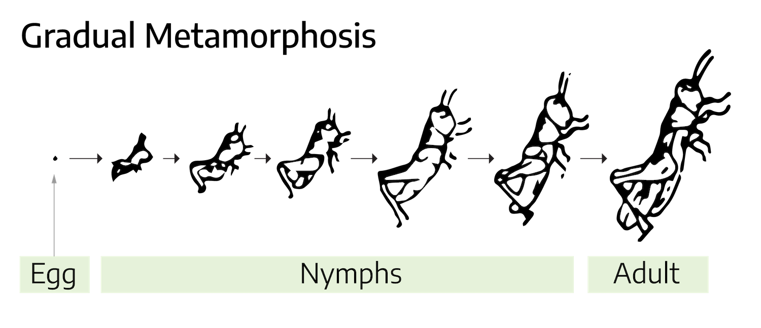 - Figure 3-5: Without metamorphosis. Johnson, Devon. 2022. CC BY-NC-SA 4.0. Adapted from Master Gardener Training Handbook, Virginia Cooperative Extension, 2018.