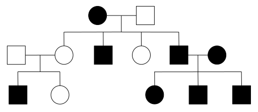 - Figure 4.3.3 Autosomal Recessive Pedigree Chart by Jerome Walker, CC BY-SA 3.0, via Wikimedia Commons